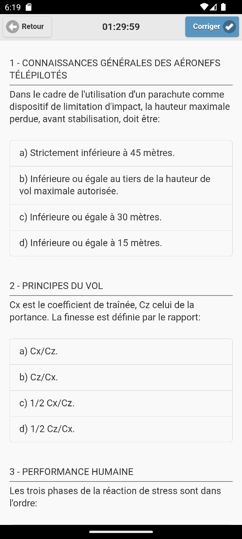 As-tu aussi des moments d'inactivité pendant la journée ? Pourquoi ne pas les utiliser pour te préparer à l'examen ? Quiz Télépilote de Drone Civil - Test d'examen pour la Licence de Télépilote? Avec notre application pour iOS et Android, vous pouvez faire des quiz où que vous soyez. Et ce n'est pas tout : l'application utilise l'intelligence artificielle pour expliquer chaque question, transformant chaque doute en une opportunité d'apprentissage ! C'est une excellente manière d'optimiser votre temps et d'arriver très bien préparé à l'examen.